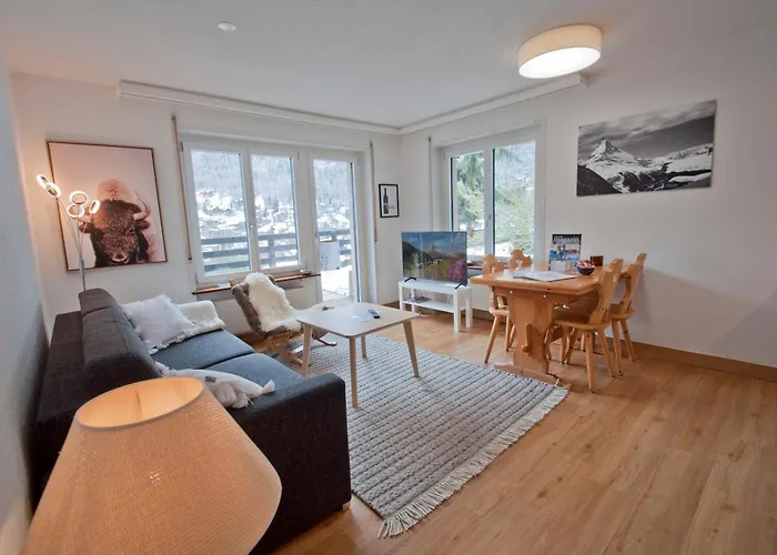 The 38 m² Haus Bodmen C, Apartment Grunsee features views of the city and is situated within 20 minutes' walk of The Matterhorn Mountain. Set only a few metres from Matterhorn Museum, this 1-bedroom apartment with a terrace overlooks the mountain.